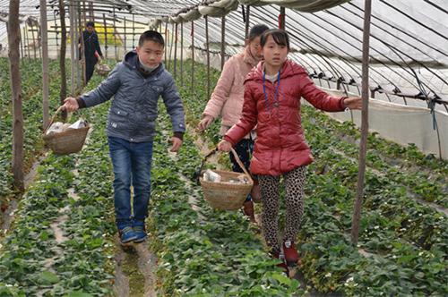 上午9时,副校长杨晓梅带领学校6名志愿者教师和21名留守儿童,前往长风农业种植园,体验户外采摘的乐趣。一路上,留守儿童们欢歌笑语,兴奋地讨论着这次活动,充满了期待。来到草莓采摘园,一派田园风光,孩子们闻到了花香芬芳,看到了草莓鲜红欲滴,异常开心。在二小阳光园丁志愿者们为留守儿童讲解了草莓的生长周期及采摘方法和注意事项后,学生们迫不及待地行动起来,兴高采烈地拿着篮子钻进棚里采摘草莓,个个兴奋不已。在娇艳欲滴的草莓丛中,留守儿童们不时的发出:“老师,你看我摘了一个大草莓。”“原来草莓是生长在地上的”等一些感叹!一轮“抢摘”后,学生们看着自己的篮子盛满又大又红的新鲜草莓,心里甜滋滋,互相之间分享着劳动成果。