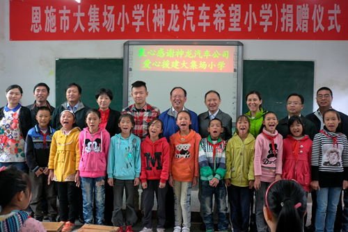 据了解,由东风汽车公司、湖北省青少年发展基金会于5月正式启动的“湖北希望工程东风润苗行动”,计划投资1000万元人民币,历时四年在湖北省内贫困山区、革命老区、少数民族地区等建设10所“东风希望小学”,并在“衣、食、住、行、学”五个方面对至少1000名贫困生进行小学阶段的资助。地处恩施、宣恩、咸丰、利川四县市交界处的恩施大集场神龙汽车希望小学是“湖北希望工程东风润苗行动”首个开工援建的学校。该校创办于1927年,现有6个年级、6个班、255名学生,未来五年在校生将达300余名。