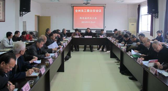 2013年11月6日,黔东南州关工委召开主任会议。州关工委主任、副主任、秘书长,各县市关工委主任、秘书长(办公室主任)40余人参加会议,会议学习传达了全国、全省基层工作年总结大会精神,州关工委主任潘永斌主持会议并作讲话。