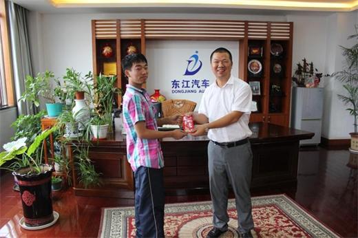 9日上午,余姚市东江汽车销售服务有限公司的办公室里洋溢着浓浓的爱意,公司陈国良董事长和总经理12点钟还等待着结对多年的贫困学生沈诚,一进入办公室沈诚再次接到2000元助学金。陈董事长对沈诚再三鼓励和叮咛,在大学要团结友爱,好好学习,消除自卑感,成为一名真正有用的大学生。