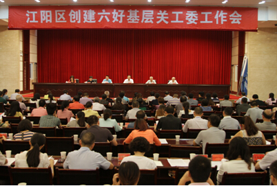2014年7月15日上午,江阳区创建“六好”基层关工委工作会在江阳会堂召开,总结前期工作,安排部署近期工作。区委常委、组织部长、关工委主任张司伦,区关工委常务副主任李七才、唐荣良、谭天锦、李业彰,区委组织部副部长、老干局长、关工委副主任兼秘书长徐晓蓉出席会议,区关工委各工作团常务副团长,各镇街(景区)关工委主任,常务副主任和关工委办公室负责人,区级各有关单位分管领导和具体工作人员,江阳区“酒城五老”志愿服务队代表等190余人参加会议。会议由区关工委常务副主任李七才主持。