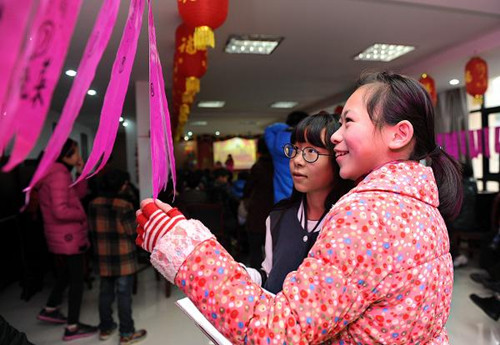 “猜灯谜”作为一项趣味性很强的传统活动,深受人们的欢迎。为了丰富社区青少年的寒假生活,白云社区组织辖区内的青少年开展“喜迎元宵猜灯谜”活动。社区工作人员精心准备了80余条灯谜,将灯谜悬挂于社区活动室内,一派喜气洋洋的气氛,只要猜对一题均有一份精美纪念品。青少年们踊跃参加,整个活动现场的气氛欢腾、热烈,孩子们的脸上都洋溢着欢乐、喜庆的笑容。