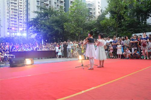 为了更好地让青少年愉快地渡过暑期,增加父母与孩子之间的亲密程度,让青少年健康茁壮地成长的同时,感受与父母在一起的青春年华时光,万东镇海棠社区关工委携手辖区佳音艺术学校在海棠晓月三号门坝子举办了一场暑期亲子嘉年华活动。活动内容主要有:少儿各种节目表演、各种亲子游戏等。
