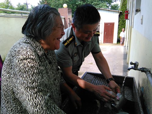 日前,安徽省安庆市迎江区炮营山社区党员志愿者在街道武装部部长、社区党代表陈根林的带领下,来到长风乡敬老院开展献爱心活动。