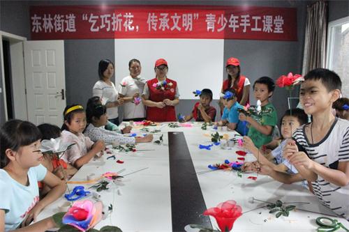 万盛经开区东林街道关工委开展“乞巧折花,传承文明”青少年手工课堂
