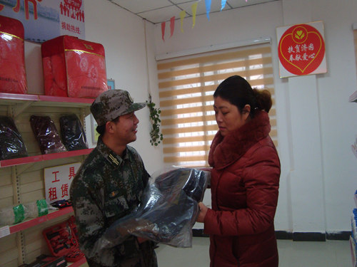 此次活动“慈善超市”共为社区5名困难退伍军人进行了爱心捐赠,为他们送上了棉衣,了解他们的生活状况,送去党和政府的温暖。