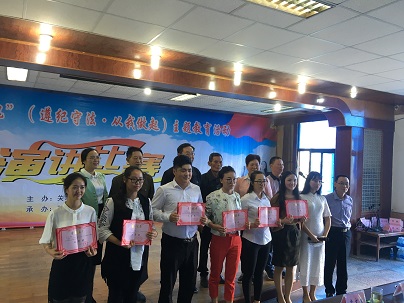比赛结束,评委们对“中华魂”(遵纪守法 从我做起)征文比赛的作品进行了评选,最终评出演讲、征文比赛一等奖各1名,二等奖各2名,三等奖各3名。