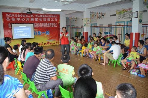 2013年8月30 日,普宁市关工委、市敬老爱幼心理辅导志愿服务队与普宁市启星脑瘫弱智儿童康复训练中心联合举办《家长培训》心理健康常识咨询活动,市妇联主席余艳萍同志、市社工委黄耿斌同志、市关工委副主任蔡兴快同志莅会指导。会上,市关工委副主任蔡兴快同志作了热情洋溢的讲话,市关工委委员纪夕雄老师和普宁二中心理学专职教师许漫老师分别作了精彩演讲。会后开展心理健康常识咨询活动,市心理辅导志愿服务队积极为家长解答心理健康常识等问题,并与热心人士一起为启星残疾儿童赠送了慰问金和文具书包等。