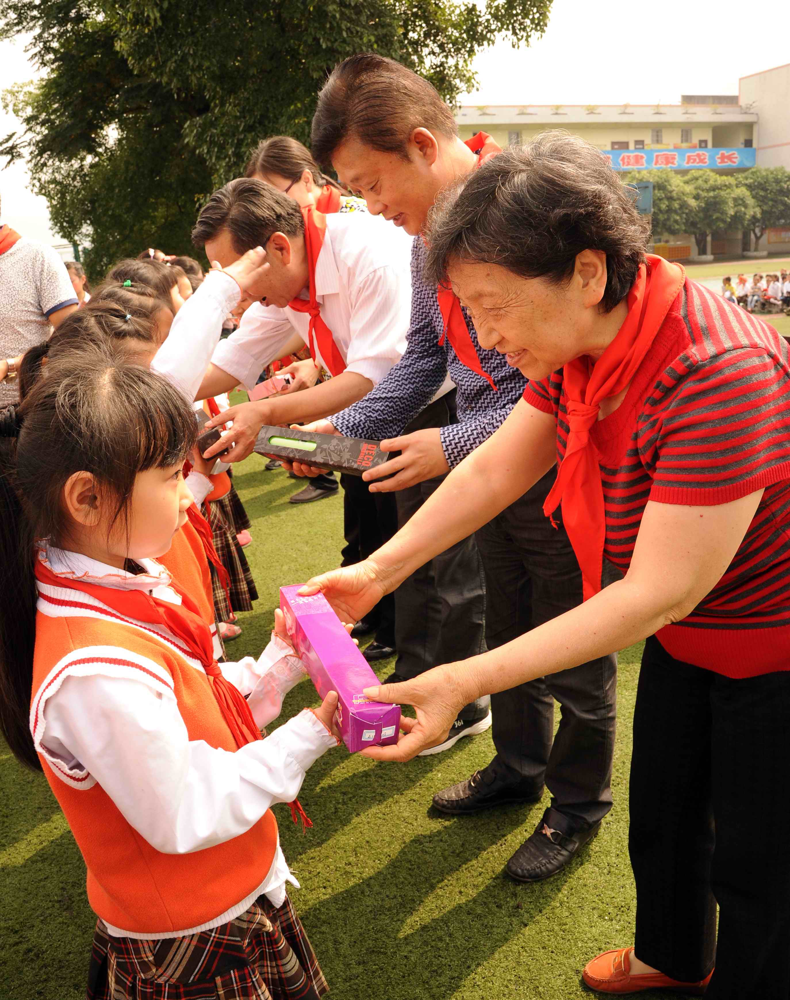 孩子们纷纷走上舞台,用飞扬的歌声开启了文艺汇演活动。一首动听的歌曲,一个怡情的相声,一曲优美舞蹈,都记录着孩子们稚嫩的笑脸。在捐赠仪式上,万东镇关工委共为新华小学1240名学生送去价值2万余元的雨伞。在爱心结对帮扶仪式上,共有6个爱心企业与辖区村、社区、学校现场签订“爱心结对帮扶书”,他们将以自己的行动传递一份爱心,传递一份真情。