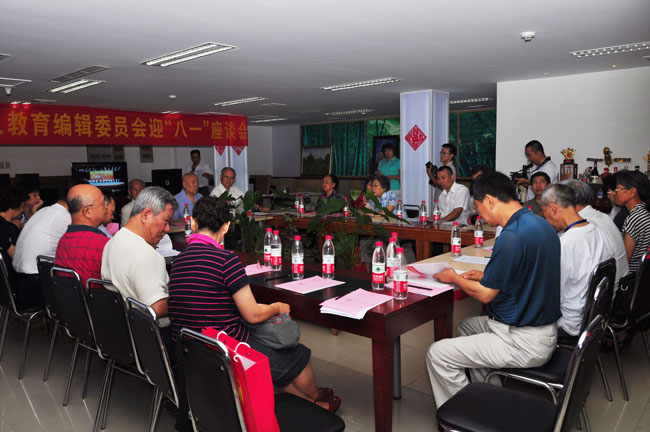 2011年7月20日上午,北京钓鱼台山庄迎来了一批客人。中国爱国主义编辑委员会全体人员,在这里与部分老红军、老将军、延安儿女研究会成员、老前辈子女等近百人会聚一堂,召开迎“八一”座谈会,一起学习领会胡锦涛总书记“七一”讲话精神,忆历史,谈现实,共话爱国主义教育。