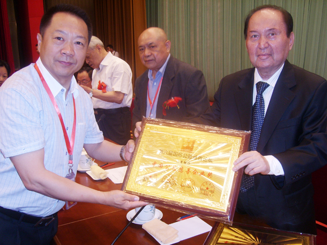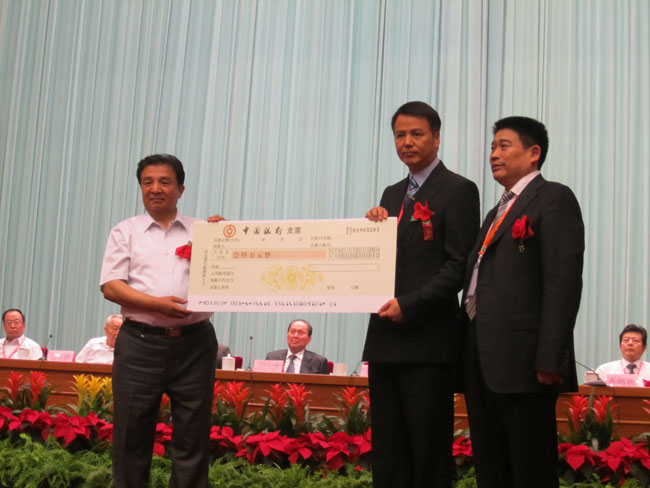 全国人大常委会副委员长司马义•铁力瓦尔迪为包商银行颁奖并表示祝贺