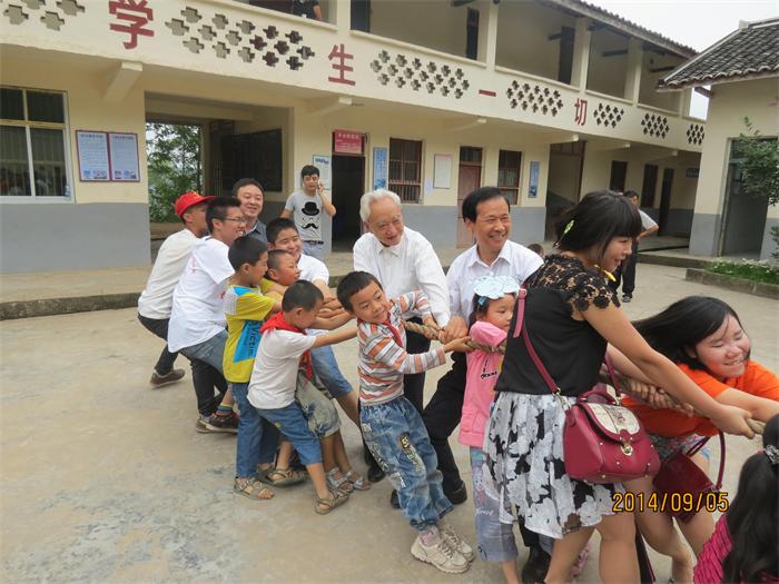 一到学校,周尚聪、苟于渊等便与留守儿童们手拉手,坐在一起拉起了家常,关心地询问孩子们的学习和生活情况,留下了自己的电话号码,用于帮助解决孩子们的具体困难。查看了该校留守儿童之家活动开展记录情况。又兴致勃勃地与孩子们一起拔河、跳绳、丢手绢。恰逢10岁留守孩子龚欣月过生日,周尚聪等亲手为小欣月点燃生日蜡烛,切开生日蛋糕,陪她许下美好的心愿,全体人员一起唱起了生日歌,祝她生日快乐。陈鑫民等孩子还与他们的家长视频通话,告诉远在广东的父母不要担心,自己学习生活都很开心。童稚的歌声、精彩的舞蹈、加油声、喝彩声、鼓掌声让活动现场一片欢腾。游戏结束后,周尚聪、苟于渊等手把手教孩子们包饺子、煮饺子,孩子们吃着自己亲手包的饺子、品尝着月饼,个个脸上洋溢着幸福和快乐。