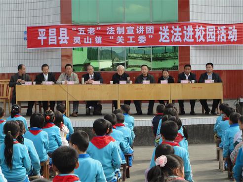 为深入贯彻落实党的十八届四中全会依法治国战略部署,全面推进乡镇“六好”关工委组织建设。近日,平昌县关工委组织县“五老”法制宣讲团和灵山镇关工委在灵山小学中心校、草坝村、民意村、关路村校举办了三场别开生面的“送法进校园”专题讲座。灵山镇、村相关工作负责人、灵山小学全体师生和学生家长共950余人参加了此次活动。