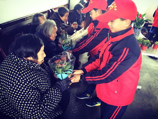 3月12号是我国一年一度的植树节,正是春暖花开,草长莺飞的季节,桥头镇关工委联合镇妇联、团委开展了“绿色慈孝”活动,给敬老院每位老人送上了一份绿色的祝福。小小志愿者们把一盆盆好看的植物作为植树节的礼物送给每一个老人,摆在床头,为他们的房间增添了一抹富有生机的绿色,让他们足不出户也可以感受到春天的气息。“婆婆,每天看看这绿色植物,心情也会舒畅的!”“奶奶,祝你身体健康!”一声声祝福、一声声问候,带给了老人们无限的快乐与感动。通过这样的活动,不仅让孩子们树立了爱绿护绿意识,更是对少儿关爱、孝敬老人,培养良好品德起到了促进作用。