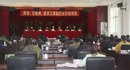2015年3月11—13日,阿坝、甘孜州、县关工委执行主任培训班于四川省关工委培训中心隆重开班。六十余名参训人员全部来自甘孜、阿坝州、县等藏区关工委。专门就藏区开办关工委执行主任培训班属全国首创,在四川关工委历史上也是第一次,充分体现了省关工委对藏区关心下一代工作的高度重视。