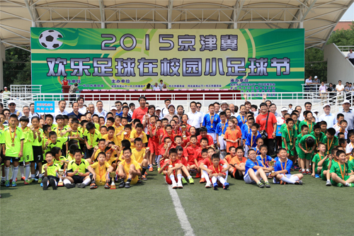 6月17日,由中国关心下一代工作委员会作为指导单位、京津冀三省市关心下一代工作委员会联合相关部门共同主办的“2015京津冀欢乐足球在校园小足球节”在北京市大兴区第十小学隆重举行。来自京津冀地区16支校园足球代表队近400名学生在阵阵助威声中上演了《空当接龙》、《翻山越岭》、《五星上将》、《穿越封锁线》等趣味十足的足球游戏大比拼。参加比赛的学生最大的12岁,最小的只有7岁。