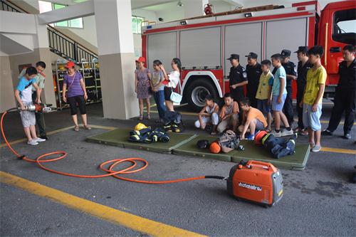 当天,大家在万东消防队员的带领下,首先参观了执勤车辆和各种装备器材,还在消防车车载视频上观看了基本消防知识和火灾给人民群众带来的危害。之后分成两个组,一组现场进行了解各类消防器材的使用性能和方法,一组现场试穿了消防防化服,体验了各类灭火及营救人员工具的使用等。