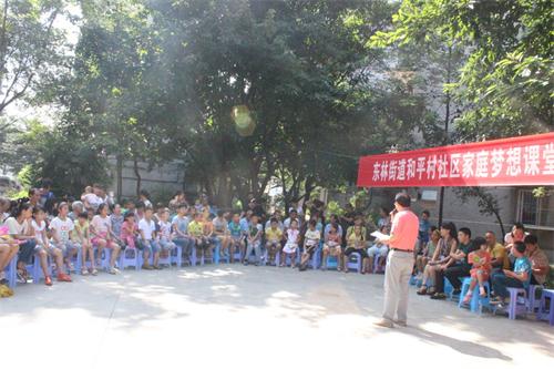 “家庭梦想课堂”旨在帮助孩子和家长共同成长,引导家长树立正确的育人观和成才观。东林街道和平村社区关工委家庭梦想课堂将每季度定期走进辖区各社区、学校开展活动,倾力为孩子和家长搭建一个交流沟通,共同成长的学习平台。