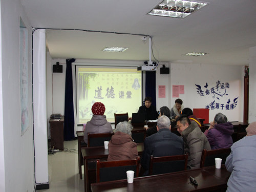 1月4日下午,以“中华孝文化前世今生”为主题的道德讲堂在安徽省安庆市迎江区南水回族社区如期开讲。讲堂由社区党委书记张宏军主持,按照“自我反省、唱歌曲、诵经典、讲好人好事、一堂一善事、向德鞠躬、发善心、送吉祥”八个环节有序进行。
