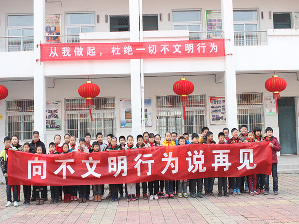 仪式由该校大队辅导员王慈主持,他用亲切的话语再一次教育学生对文明行为的认识, 随后,六年级学生朱文浩向全校师生发出“告别校园不文明行为”倡议。该校校长陈文妹作了题为“托起中国梦,做文明有礼的小学生”的讲话。她指出文明是一种品质,卫生是一种习惯,讲文明和讲卫生是一种受人尊敬并被大家广泛推崇的行为。该校举行这样的活动,目的就是要进一步加强全校师生的文明意识和卫生习惯,加强学生常规习惯的养成教育,创设校园良好的育人环境,促使全体师生的整体素质得到进一步的全面提高,进而形成良好的校风、班风和学风。全校学生在横幅上纷纷签上自己的名字,作出自己庄严的承诺,表达了自己向不文明行为告别的坚定信心和决心。