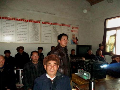 图为该镇电影队在第二敬老院放映时的情景。